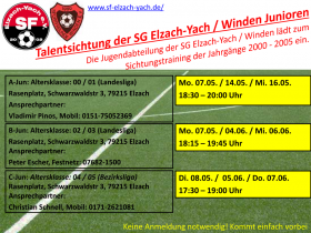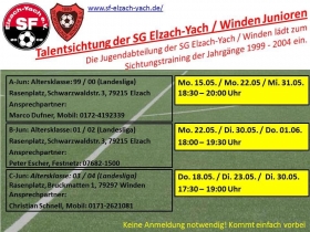 Die Jugendabteilung der SG Elzach-Yach / Winden lädt zum Sichtungstraining für die folgenden Jahrgänge ein: